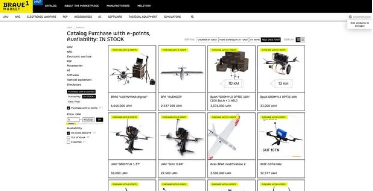 Yarışma kapsamında vuruş yapan askerler, 100'den fazla farklı İHA, otonom araç ve diğer İHA savaş malzemeleriyle dolu "Amazon-for-war" adlı çevrim içi mağaza Brave1'de daha fazla silah satın almak için kullanabilecekleri puanlarla ödüllendiriyor.