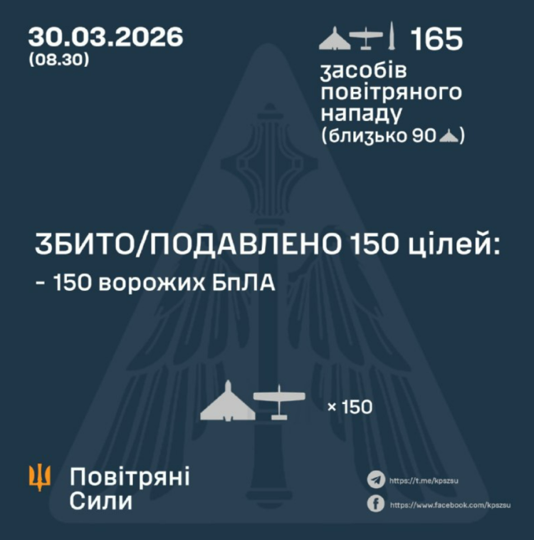 Ukrayna Hava Kuvvetleri, Rusya'nın fırlattığı 164 SİHA'dan 150'sini düşürdü.