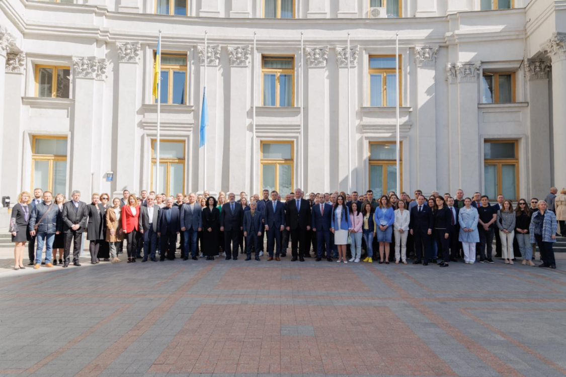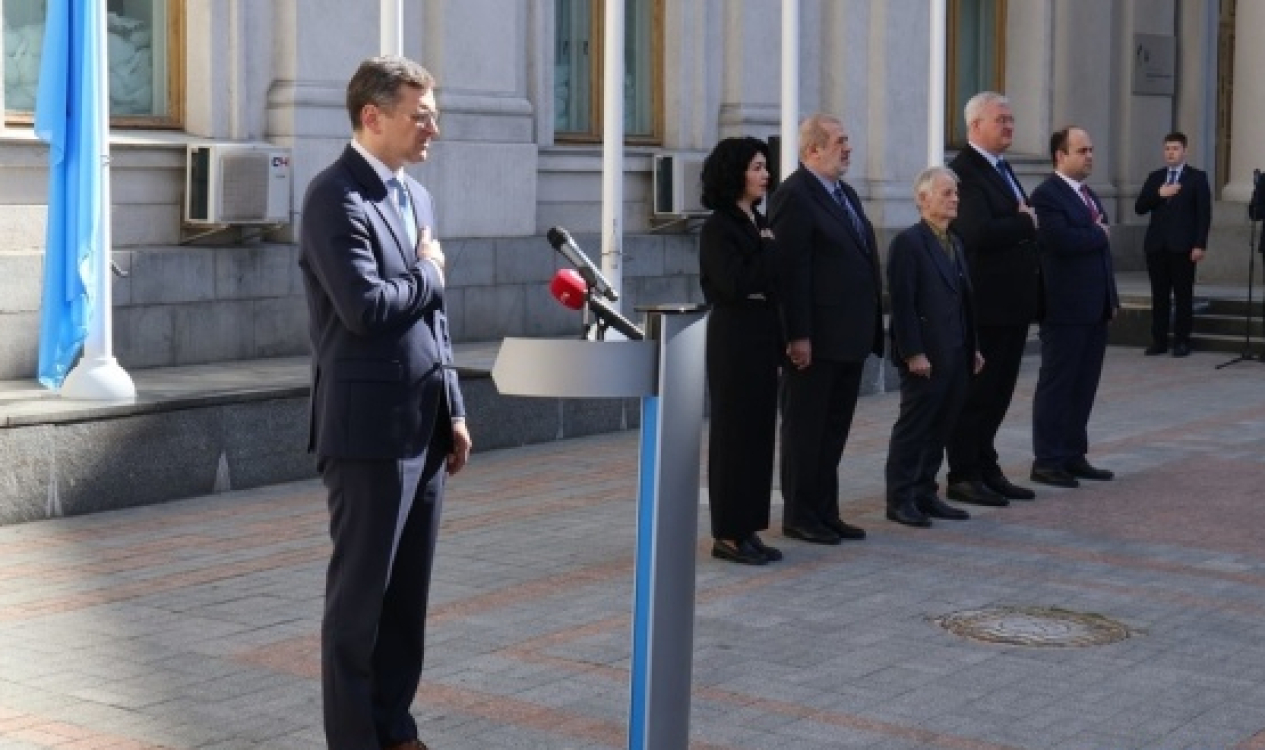 Dışişleri Bakanlığı binası önünde düzenlenen tören, Ukrayna ve Kırım Tatar millî marşlarının okunması, akabinde gerçekleştirilen saygı duruşuyla başladı. Ardından siyah kurdeleli Kırım Tatar bayrağı göndere çekildi.