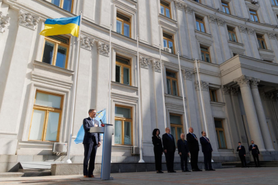 Törende konuşan Dışişleri Bakanı Kuleba, “Bu bayrağı Dışişleri binası önünde bir çok kez göndere çekmiştik. Bu tören Kırım’da yapılabilene kadar bu bayrağı burada gerektiği kadar göndere çekeceğiz. Bu bayrak Kırım’da da dalgalanacak. O gün mutlaka gelecektir.” dedi.