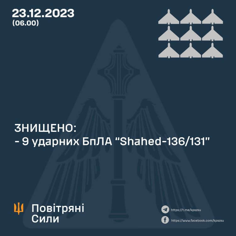 Ukrayna Hava Kuvvetleri tarafından konuyla ilgili yapılan açıklamada ayrıca Rus saldırılarının 22 Aralık saat 18.00'den 23 Aralık 2023 gece yarısına kadar sürdüğü açıklanırken; İHA'ların işgal altındaki Kırım'ın Balaklava ve Rusya'nın Primorsko-Akhtarsk bölgelerinden fırlatıldığı kaydedildi.