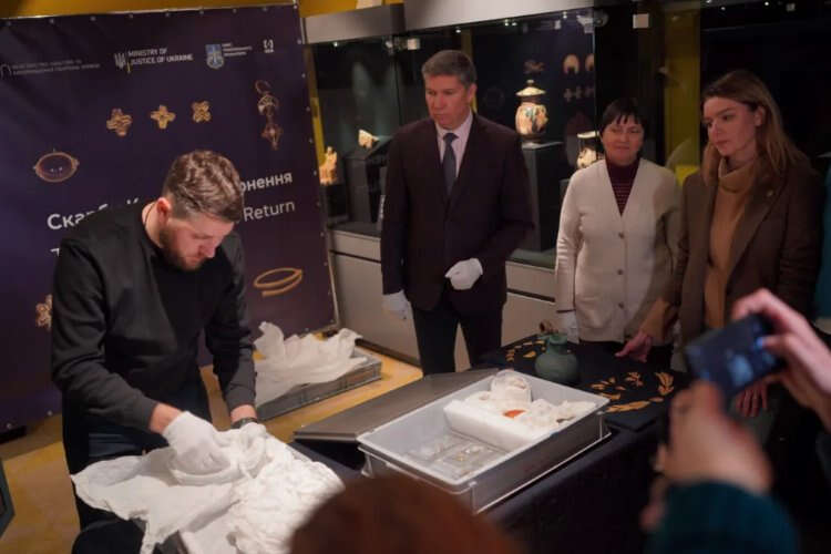 Etkinlikte konuşan Kültür ve Enformasyon Politikası Bakan Vekili Rostıslav Karandeyev, “Ukrayna kendine ait olan şeyleri geri alıyor. Ukrayna ordusu işgal altındaki toprakları geri almak için mücadele ettiği gibi Ukrayna yetkilileri, müze çalışanları, diplomatlar Ukrayna'ya ait kültürel varlıkları geri almak için ellerinden geleni yapıyor. İşgal altındaki bölgelerden yasa dışı olarak çıkarılan, çalınan, Ukrayna’ya ait olan dolayısıyla ülkemizde olmaları gereken tarihi eserler için mücadele ediyoruz. Bugün çok önemli ve örnek olaya tanıklık ediyoruz. Ukrayna-Rusya savaşının başlangıcından bu yana ilk kez bu kadar büyük ve önemli tarihi eser koleksiyonu ülkemize iade ediliyor. 10 yıldan uzun süredir Ukrayna dışında bulunan İskit Kırım Altınları koleksiyonunu ülkemize geri getirdik.” ifadelerini kullandı.