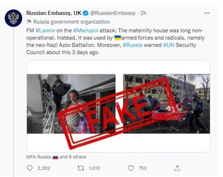 Rusların sivilleri öldürmediklerini iddia ettiler. Hatta Mariupol 3 no’lu hastanenin çocuk ve doğum bölümlerini bombalanmadıklarını belirttiler. Burayı bombalayanların Azov taburu olduğunu ve Mstyslav’ın çektiği görüntülerdeki insanların figüranlardan oluşan bir film çektiklerini bile iddia etmişti. Ruslar Mstyslav’ın filminde çektiği ve AP olarak tüm dünyaya servis ettiği görüntülerdeki güzellik blogçusu olan Marianna Vishergiskaya’nın Rusya’yı karalamak için kiralanmış aktrist olduğunu, hamile bile olmadığını, yaralı olmadığını bile iddia ettiler.